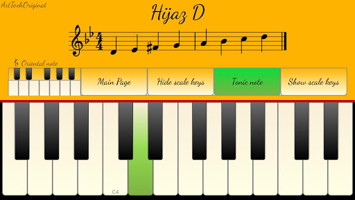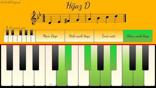 in this application you can play a piano with the oriental scales Rast, Ajam (major), Hijaz, Nahwand (minor), Saba, Hijaz, Sika, kord.