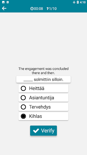 A quick English Finnish dictionary ( offline ), alternative translation, irregular verbs, frequently used Finnish sentences, tests (writing, listening, speaking) and games...
