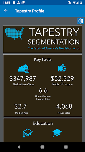 * Get a quick demographic and market snapshot for a location to understand the types of people live in that area.