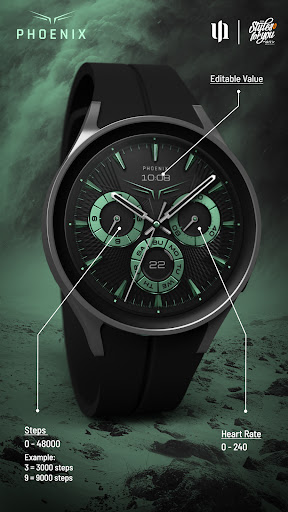 Enhance your Wear OS experience with the S4U Phoenix. A luxury realistic classic analog watch face with 1 editable complication and many editable shortcuts.