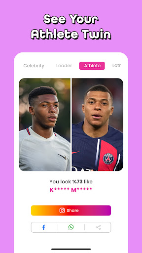 Extensive Database: From athletes to actors and global stars, Star by Face connects you to an unmatched variety of lookalike matches.